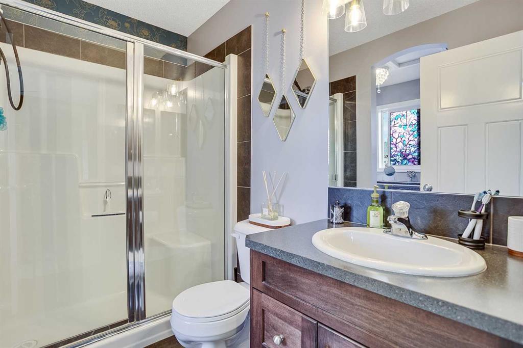 Welcome to 105 Drake Landing Loop – The Perfect Blend of Comfort, Functionality & Style! This fully finished, move-in ready home offers 4 bedrooms, 3.5 bathrooms, and space for the whole family to enjoy. The main floor features a cozy living room with a gas fireplace – perfect for relaxing evenings – and a bright, open kitchen with granite countertops, a corner pantry, plenty of cupboard space, and direct access to the backyard. Step outside to a beautifully finished yard with multi-level decks, raised garden beds, and low-maintenance design – an ideal space for entertaining or unwinding. Upstairs, you’ll find a spacious primary bedroom with a walk-in closet and private 3-piece ensuite, along with two additional bedrooms, a full bathroom, and convenient upper-level laundry. The fully developed basement adds even more living space with a fourth bedroom, another full bathroom, and a second family room. Car lovers and hobbyists will appreciate the oversized heated garage, finished to perfection with epoxy floors, knockdown ceilings, painted walls, and impressive high ceilings – a true man-cave! Other highlights include extra off street parking, durable Hardie board siding, Air-conditioning, Gemstone soffit lights, and a prime north location of Okotoks. Close to parks, schools, and walking paths and some new commercial/ retail stores coming soon. Don’t miss this incredible opportunity to own a beautiful, functional home in a family-friendly community!