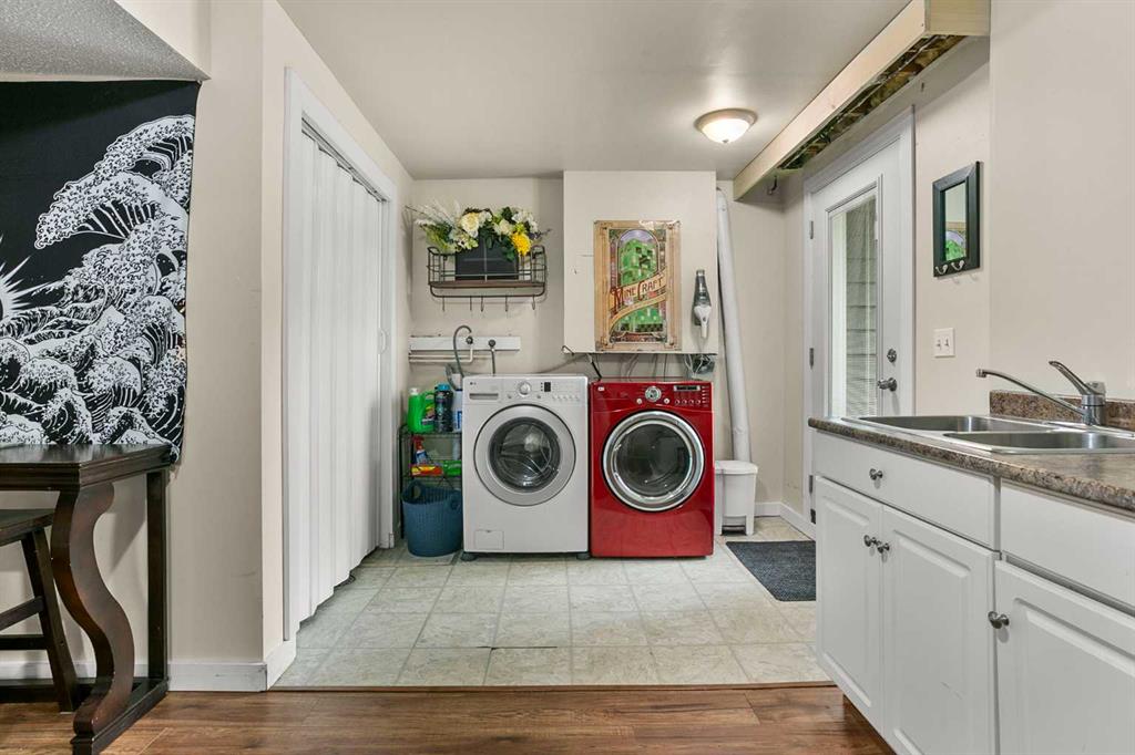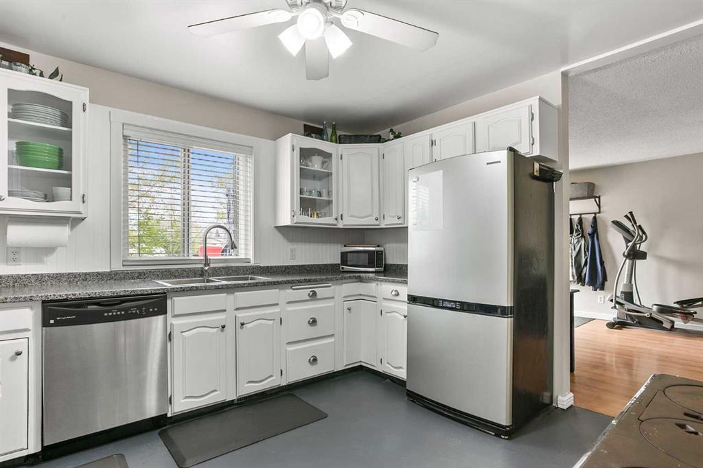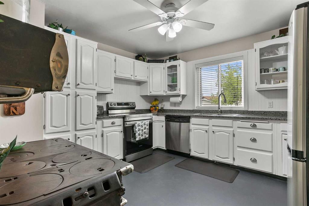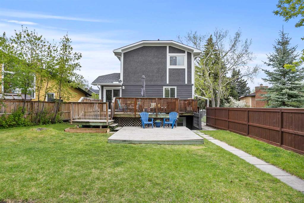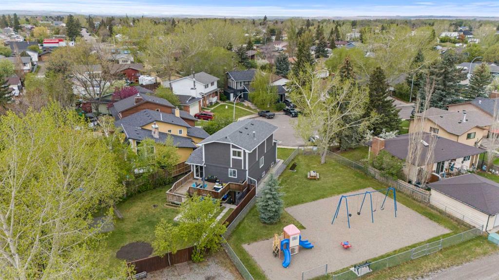 Charming Family Home for Sale in High River! This delightful 2-storey home with almost 2400 sq ft of living space in the heart of High River offers a functional floorplan designed with family living in mind. With plenty of space for everyone, this home has been thoughtfully updated in 2024 with new windows, doors, shingles, and eves and gutters, along with recent exterior paint —giving it fantastic curb appeal and peace of mind. The main floor welcomes you with a cozy front living room, a spacious dining area perfect for entertaining, and a warm, country-style kitchen full of character and charm. Upstairs, you’ll find a massive primary bedroom featuring a beautifully renovated ensuite bathroom. There’s room to relax and recharge in comfort 2 more good sized bedrooms and a full bathroom complete the upper level. Downstairs , the fully finished lower level adds even more flexibility with an additional living room, a bedroom, a flex room, and a kitchenette—an ideal setup for a mortgage helper, in-law area, or guest retreat. Step outside to enjoy one of High River’s largest south-facing yards—a true outdoor oasis! Complete with a multi-level deck, firepit area, mature trees, room to garden, and space for kids and pets to play, this yard is built for making memories. There’s also a parking pad at the back for added convenience, and the property sides onto a kids’ playground—perfect for young families. Packed with charm, updates, and outdoor space, this home is a rare gem. Walking distance to lakes, schools, shopping, and perfectly located in the desirable neighborhood east. Come it for yourself—you’ll fall in love!